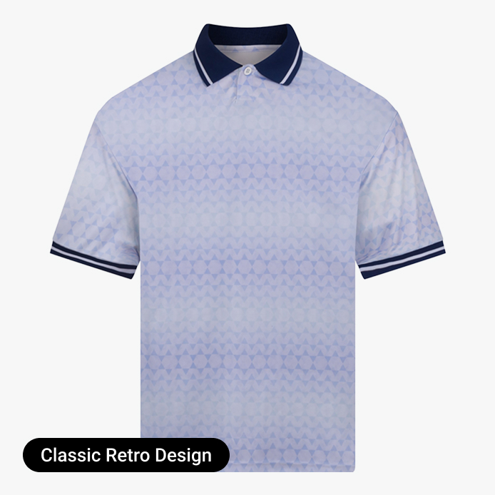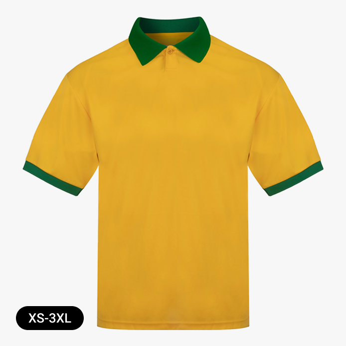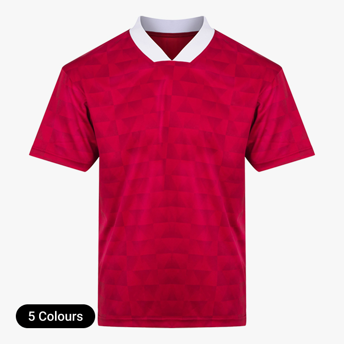 We offer white with a retro shimmer (England home Italia 1990 vibes, West Germany), Red with a retro shimmer (England away, Man Utd, Liverpool), Green (Ireland, Northern Ireland), Yellow (Brazil), Blue (Scotland, France, Italy). Note that the sleeves/collars are slightly different depending on which colour you go for.