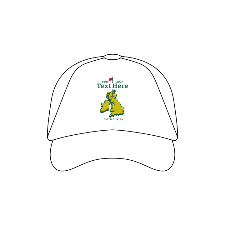 This unique Masters-inspired embroidered golf cap features the iconic "Misters" Tournament logo, but there's a twist. You can customise the country. Personalise it with the country you’re visiting or proudly represent your own. You’ll also have the option to add custom text, whether it’s your golf society name or the date and destination of your next tour. You can get your initials embroidered on the side for £2.99.