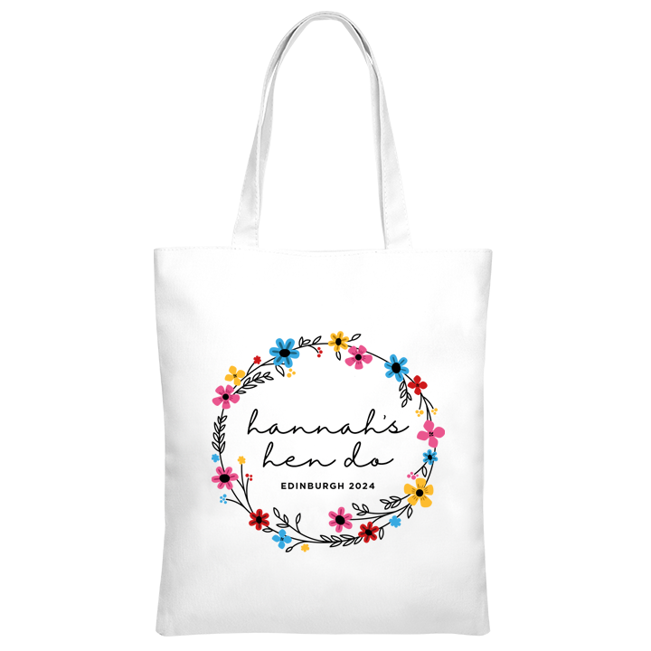 LNOF's hen do tote bag features – front view