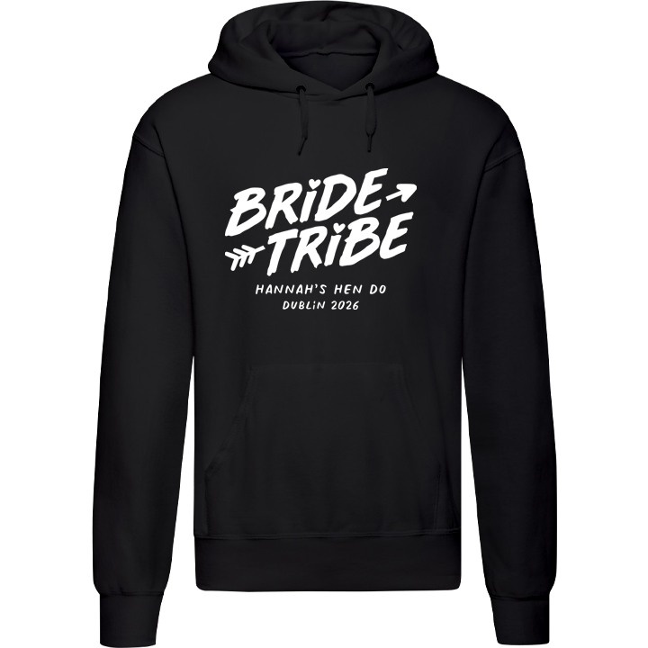 Bride Tribe Hoodie - front viewBack Bride Tribe Hen Do HoodiesBride Tribe Hoodie - back view'Bride Tribe Hoodie - zoom view'First Line of TextSecond Line of TextName on BackNumber on Back
