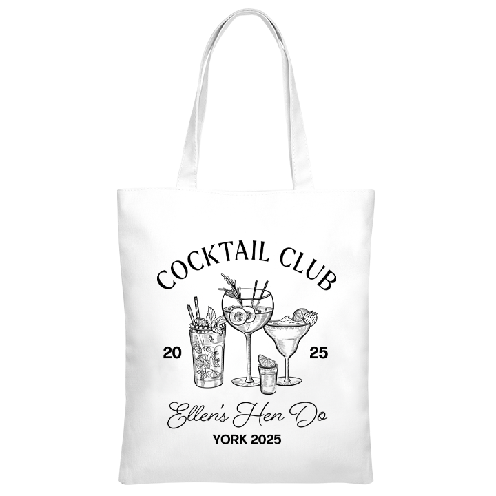 Cocktail Club Tote Bag - front viewBack Bride Squad Arrow Hen Do Tote BagCocktail Club Tote Bag - back view'Cocktail Club Tote Bag - zoom view'First Line of TextSecond Line of Text