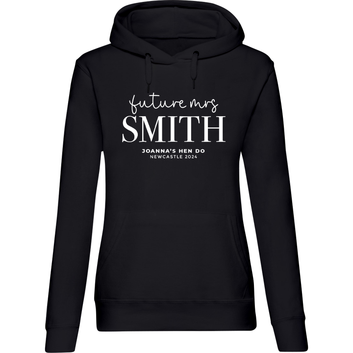 Future Mrs Lettering Hoodie - front viewBack Future Mrs Lettering Hen Do HoodiesFuture Mrs Lettering Hoodie - back view'Future Mrs Lettering Hoodie - zoom view'First Line of TextSecond Line of TextThird Line of TextName on BackNumber on Back
