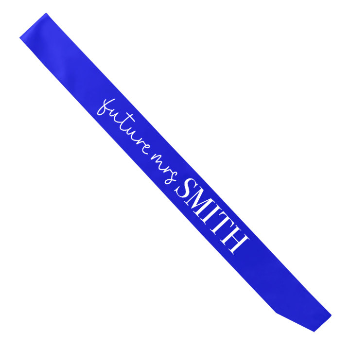 Future Mrs Lettering Sash - front viewBack Future Mrs Lettering Sash - back view'Future Mrs Lettering Sash - zoom view'First Line of TextName on Back