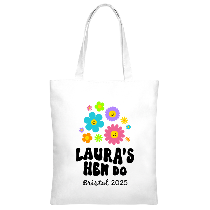 Groovy Hen Tote Bag - front viewBack Groovy Hen Hen Do Tote BagGroovy Hen Tote Bag - back view'Groovy Hen Tote Bag - zoom view'First Line of TextSecond Line of TextName on Back