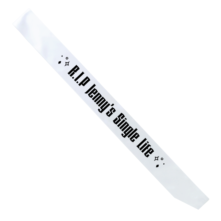 RIP Single Life Sash - front viewBack RIP Single Life Sash - back view'RIP Single Life Sash - zoom view'First Line of Text
