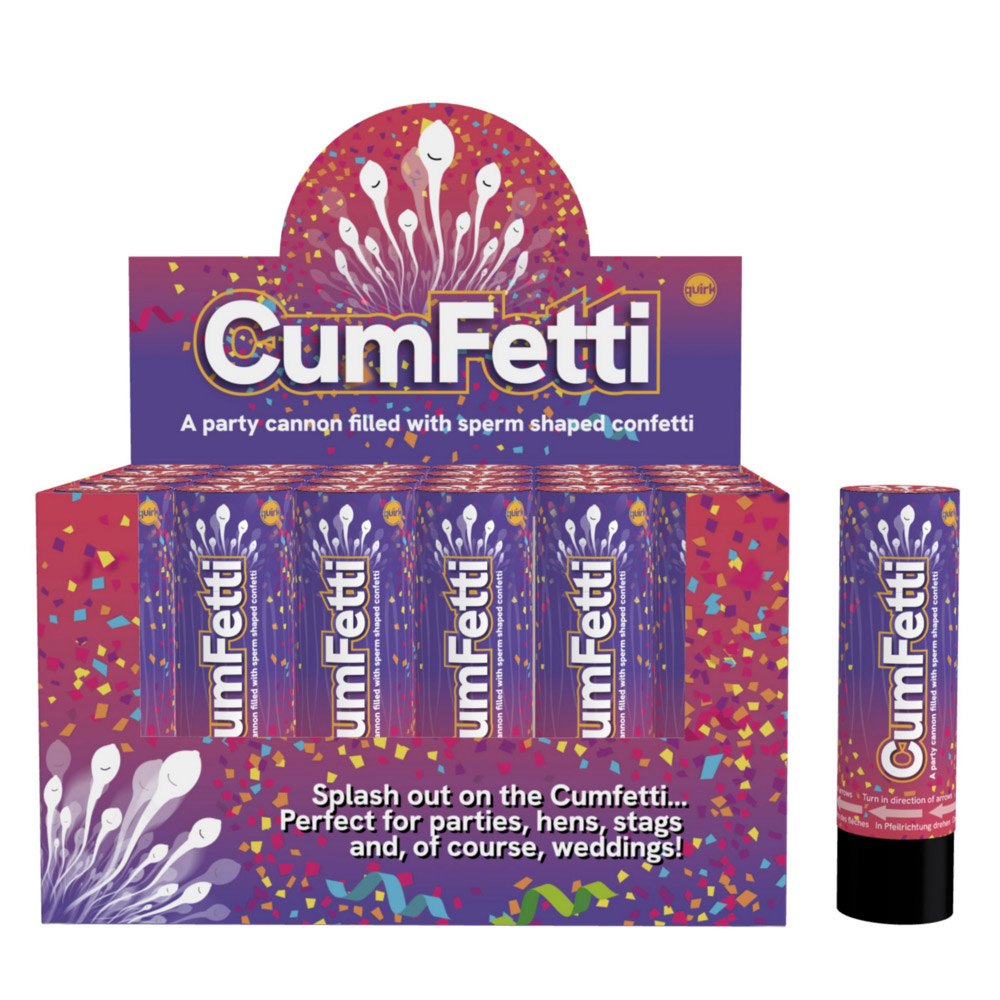 The party popper includes 45 grams of sperm-shaped confetti. Celebrate your last night of freedom with a BANG and shower your nearest and dearest with this hilarious surprise. Give your bride a taster of her honeymoon with this easy to clean away 'spermazing' confetti!