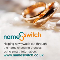 Give the Bride (or groom) the Gift of Time with this ultimate wedmin buster – a NameSwitch Gift card. This unique & simple to use service helps newlyweds cut through complex and daunting red tape and makes changing names a doddle.