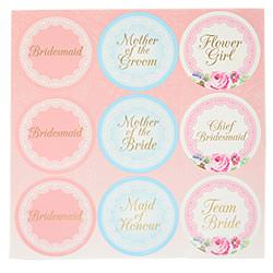 • Stickers include Mother of the Bride, Flower Girl, Bridesmaid, Mother of the Groom, Team Bride, Maid of Honour and Chief Bridesmaid