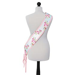 • Lovely sash but its made of paper not fabric so its quite rigid.