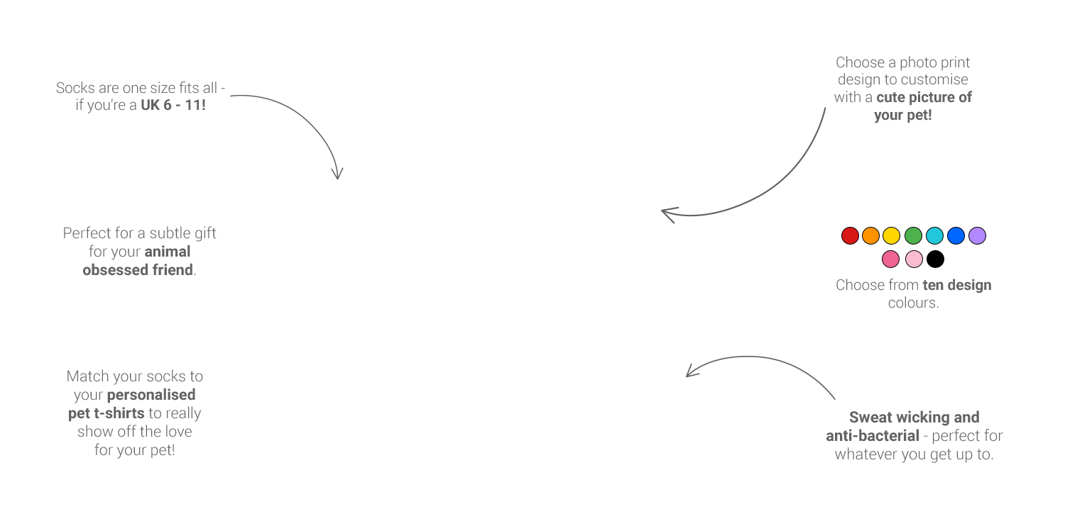Our design team will send you a mock-up of the design to approve before printing, and once it’s signed off, we’ll dispatch your socks within 2 working days.