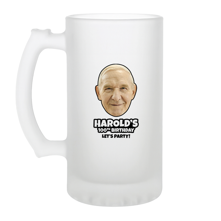 Raise a toast in style with a Personalised Stein - the ultimate gift for a beer lover. Simply upload a face photo and we’ll print it onto a 16oz (holding approx. 454ml) glass stein. This fun (almost) pint glass is available in frosted or clear and has a choice of 10 design colours. It has a sturdy handle making it easy to grip.