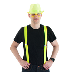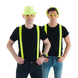 The glasses have a plastic neon frame with silver Ray Ban style wing detail and clear plastic lenses and are a great finishing touch to a geek costume for a nerdy themed stag do. They come in a variety of neon colours, pink, green, yellow and orange, and go perfectly with our wide range of neon items that we also have available.